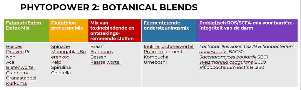 PhytoPower 2 bevat gespecialiseerde melanges die speciaal zijn ontwikkeld om het lichaam te helpen het microbioom te zuiveren van schadelijke gifstoffen en om een gezond omgeving te bevorderen waarin nuttige bacteriën kunnen groeien en bloeien.